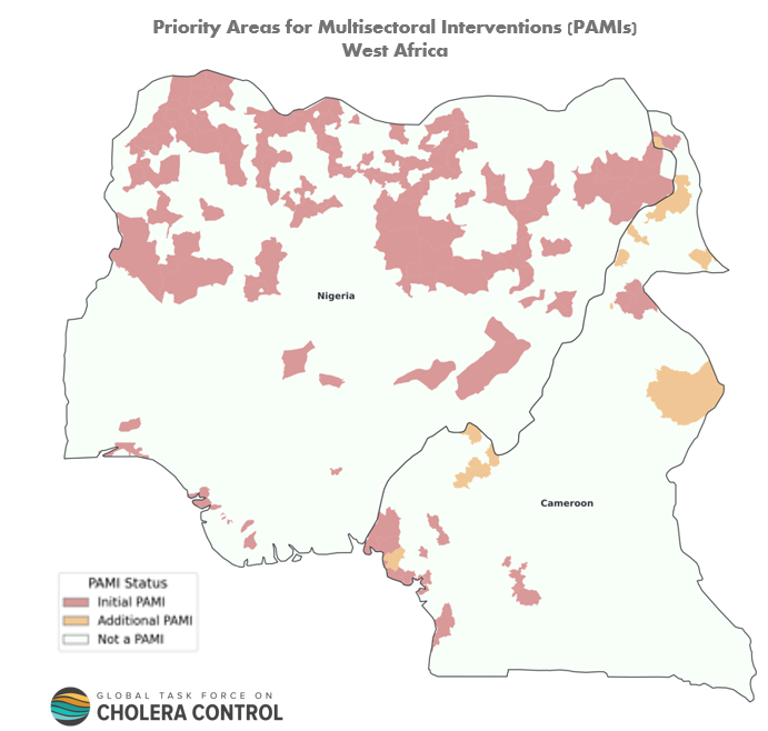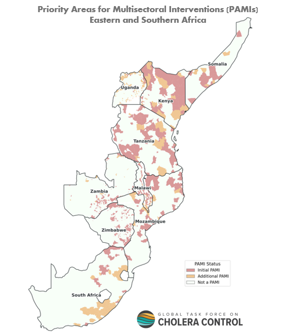 The identification of Priority Areas for Multisectoral Interventions (PAMIs) is of critical importance to target national cholera control and elimination strategies along the principles of the Global Roadmap to End Cholera.